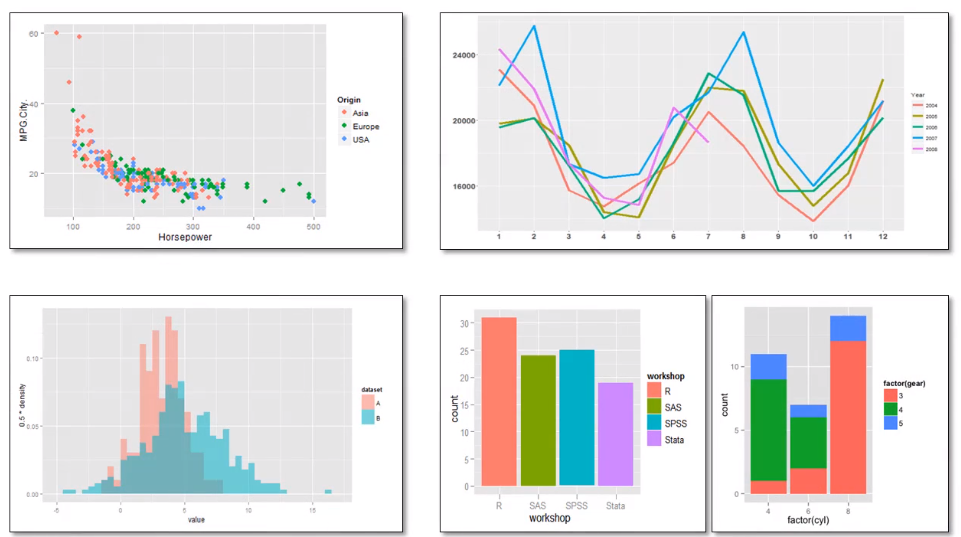 R 문법 기초에 이어서 진행되는 시각화 강좌 입니다. R의 강력한 시각화 패키지인 ggplot2를 집중적으로 배웁니다. 입문 데이터 분석 프로그래밍 언어 R 온라인 강의