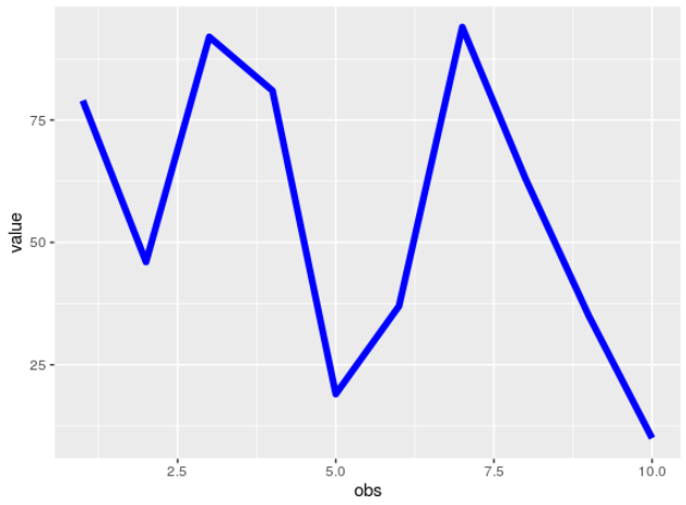 | ggplot(data = color_df, aes(x = obs, y = value)) + geom_line(size = 2, color = 'blue') |