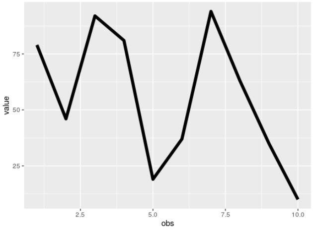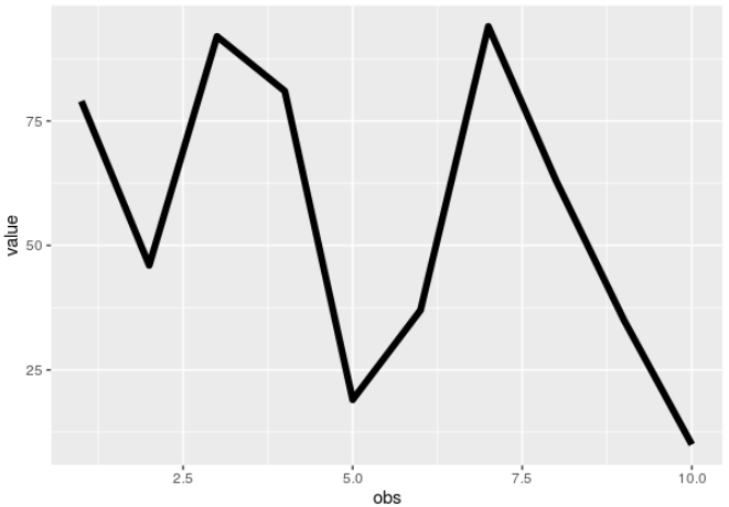 | ggplot(data = color_df, aes(x = obs, y = value), color = 'blue') + geom_line(size = 2) |