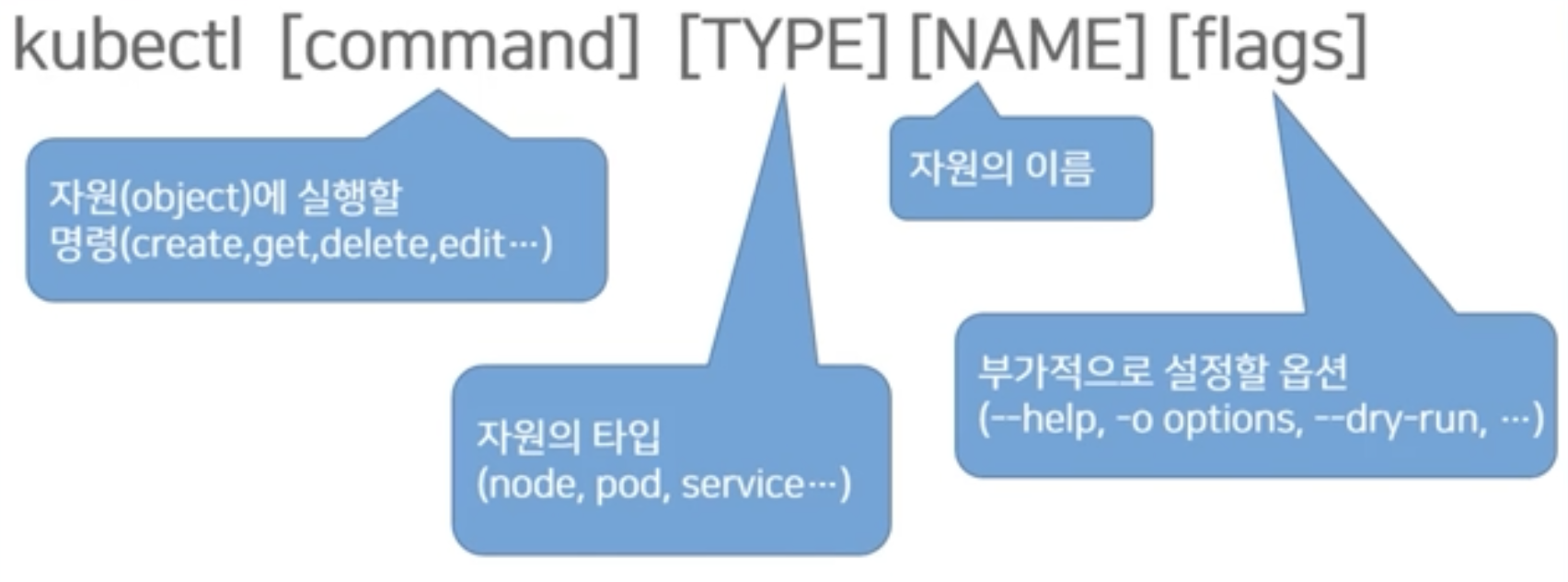 kubectl 명령어 구조는 다음과 같으며, 세부적인 기능은 --help 기능을 이용해 확인할 수 있다.
